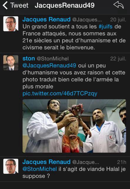 Le vrai visage infecte de Jacques #Renaud adjoint au maire de Montreuil-juigné sur #Twitter. Cet homme vit en #France le pays des Droits de l’homme…