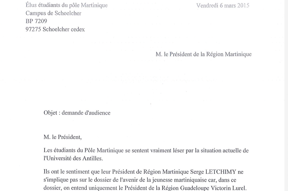 Les représentants élus des étudiants, des enseignants-chercheurs, une intersyndicale ont déjà fait parvenir leur demande d’audience urgente auprès du Président de Région. Tandis que la pression commence à monter sur le pôle Martinique, il se dit que d’autres démarches devraient intervenir dès lundi 9 mars 2015 sur le campus de Schœlcher. A suivre.