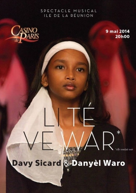 Quand on vous dit Casino de Paris, vous pensez tout de suite à des joueurs bourrés d’adrénaline s’adonnant aux plaisirs des machines à sous, du blackjack, du poker et autres jeux de tables, dans une ambiance feutrée de rouge et un torrent de bruits électronique et de « faites vos jeux ! ». Et bien vous avez tout faux (à part pour la couleur rouge) car le Casino de Paris est une grande salle de spectacle et de concert très réputée. Le mot d’origine italienne « Casino » sous-entend « petite maison » et ne réfère pas aux jeux d’argent et de hasard. Mais cette définition du mot ne colle pas non plus avec le lieu : Le Casino de Paris n’a rien de petit avec ces 1500 places et sa programmation internationale. C’était donc le lieu rêvé pour découvrir le projet de Lydie Géraud, directrice du chœur d’enfants Amadeus et de la chorale Ker ‘EDF. « Li Té Ve War », ou en Français « Elle voulait voir », est la première rencontre réussie de deux grands artistes, Davy Sicard et Danyèl Waro qui mélangent leur talent pour nous présenter un spectacle musical fort et inoubliable. Ce que les auteurs ont cherché à transmettre, c’est le constat objectif des enfants sur la nécessité de posséder une identité pour s’ouvrir au monde. Le message fort du spectacle est que l’école n’enseigne pas le patrimoine et qu’il faut chercher à connaitre et comprendre son Histoire.