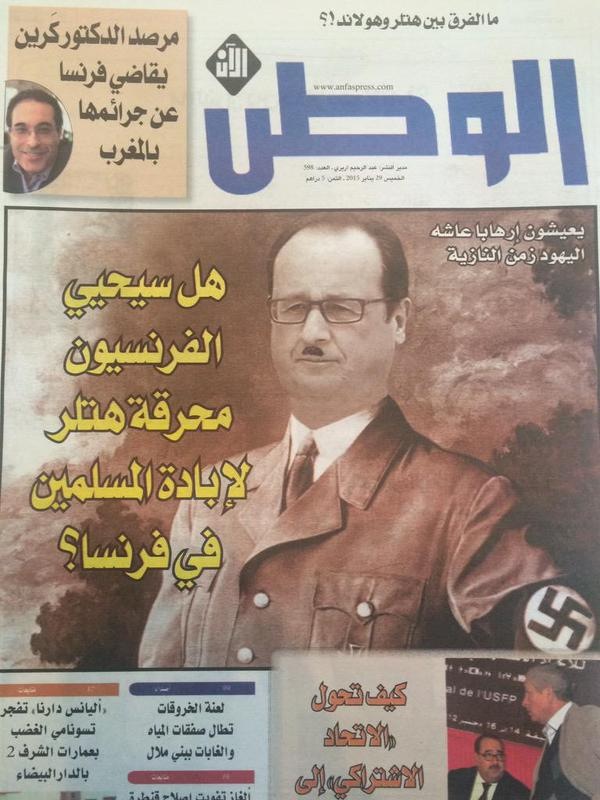 Le président Francois Hollande comparé à Hitler dans l’hebdo marocain « Al Watan Al Ane ». #jesuisalwatanalane ? #libertedexpression #jesuischarlie