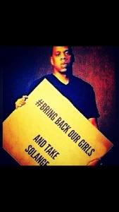 L’image du jour (14 mai 2014) bondamanjak 12 ans ago #Jay-Z #bringbackourgirls : #Beyonce…ok….#Rihanna…ok…. Solange…hum hum…NO