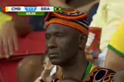 Pourquoi les arbitres se sentent-ils obligés de favoriser le Brésil ? Hier c’était un pénalty accordé pour une faute imaginaire sur #Fred. Aujourd’hui, c’est un but largement hors jeu du même Fred contre le Cameroun. On suppose que le Brésil ne peut pas perdre SA Coupe du Monde.. Vu comment c’était chaud avant, si la Seleçao venait à être éliminée….. Les gars, c’est l’exil pour eux et pour leurs familles, ascendants comme descendants et la guerre civile au pays.
