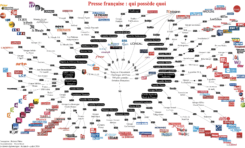 Les noms (surlignés en noir) sont des personnes physiques qui possèdent tout le reste… et tout le reste : ce sont les médias en France.