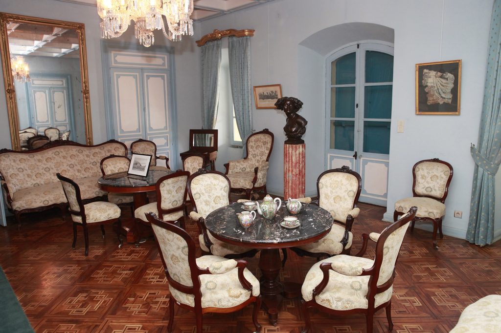 Dans cette ancienne maison de maître aux allures de palais de Pondichéry, le parcours proposé aux visiteurs au rez-de-chaussée s’organise en sept pièces. Il présente le cadre de vie de la famille dans sa configuration initiale en dépit des diverses transformations opérées au cours de l’histoire du domaine. Les ensembles mobiliers qui proviennent du patrimoine familial sont présentés à leur emplacement d’origine. D’autres meubles ou objets d’arts décoratifs acquis ultérieurement, représentatifs de l’art de vivre créole, viennent compléter ces collections. Crédit photographique, Hubert Nugent