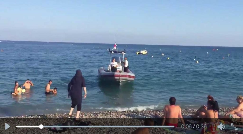 Nice : interpellation d’une femme « voilée » par la police sur la plage (vidéo) bondamanjak 9 ans ago Conseil d’Etat ? je m’en fiche, je suis le roi de Nice. J’envoie la maréchaussée en bateau traquer la musulmane sur les galets.
