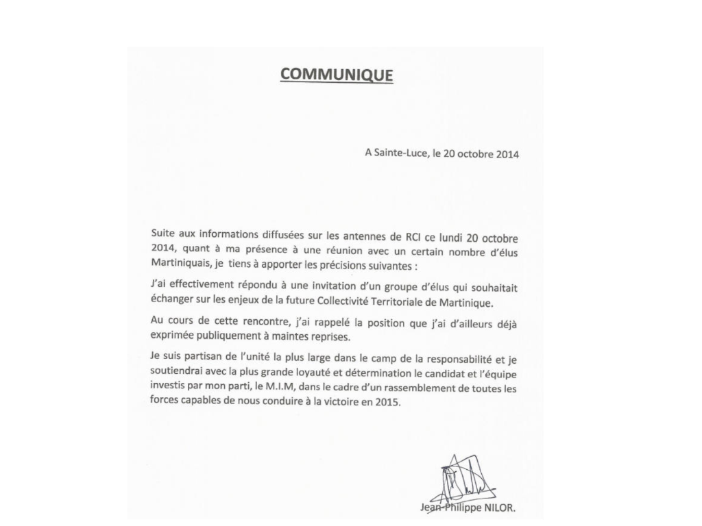 Jean-Philippe #Nilor, le député du sud de la #Martinique est à l’orée des élections de 2015, au cœur de toutes les rumeurs. Il fait ceci, il va faire cela…il aurait bu du jus d’ananas, le breuvage des traîtres…c’est un romantique qui ne va qu’au cœur…C’est un peu à cause de toutes ces nuisances sonores que ce membre du MIM a publié un communiqué mise point qui devrait calmer ceux qui voudraient être son joystick.