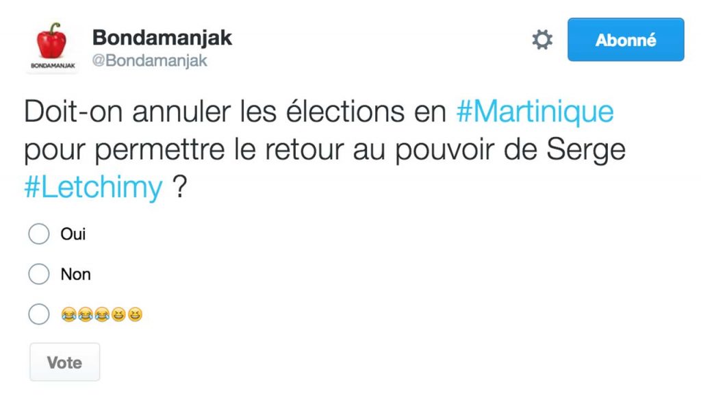 Sondage : Doit-on annuler les élections pour permettre le retour au pouvoir de Serge Letchimy ? bondamanjak 10 ans ago