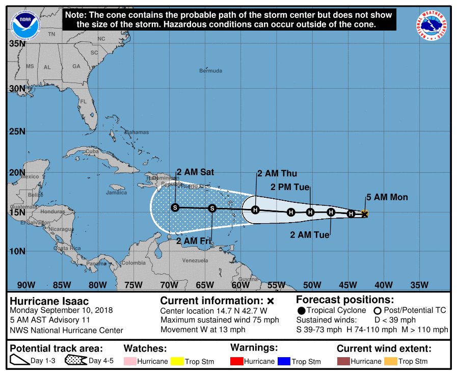 Lundi 10h00 – Toutes les dernières images des trois phénomènes en cours dans l’atlantique. Florence, Isaac, Hélène et le suivant qui se forme sur l’Afrique en ce moment !