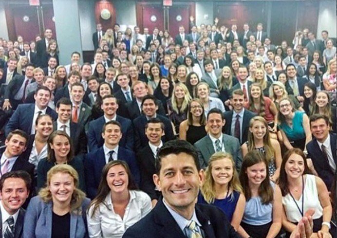 Sur la photo qu’il a tweeté hier, on remarque une troublante homogénéité des profils de ses stagiaires à la Chambre des Représentants… et depuis, les réseaux sociaux s’enflamment.