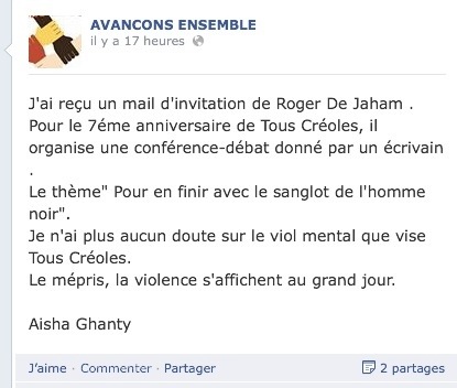 Je croyais être le seul en #Martinique à être choqué par la démarche étonnante et malsaine de Roger Jaham le président de Tous Créoles.