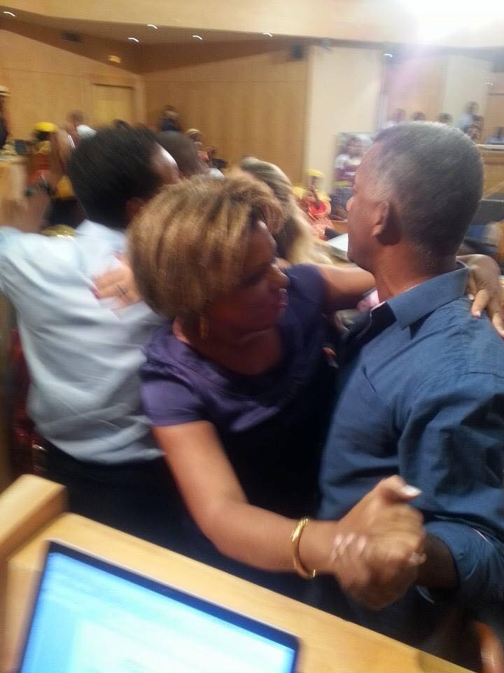 Cathou #Conconne et Francis #Carole en ont rêvé …le ballet Pomme Cannelle présent dans l’hémicycle du Conseil régional de la #Martinique a permis ce tendre rapprochement corporel entre les deux élus. Est-ce le début d’une longue histoire dédiée à Terpsichore ? L’avenir…nous le dira.