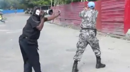 Selon les images diffusées, les manifestants auraient lancé des pierres en direction des agents de la Minustah, provoquant ainsi la riposte par plusieurs bonbonnes de gaz lacrymogènes sur les manifestants. Plus grave encore, on a pu voir un officier tirer à coup de pistolet sur la foule (photo) et agresser un journaliste reporter d’image qui filmait la scène (photo).
