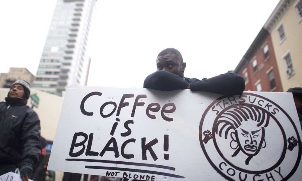 Sa chaine de cafés (hors de prix) est en train de s’enfoncer dans une sale histoire de racisme au comptoir.
