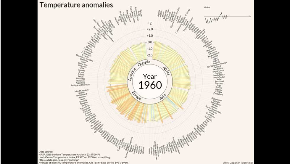 Le réchauffement climatique comme vous ne l’avez jamais vu (vidéo) bondamanjak 8 ans ago A partir des données de la NASA… les anomalies de températures dans le monde. Aucun pays n’est épargné.