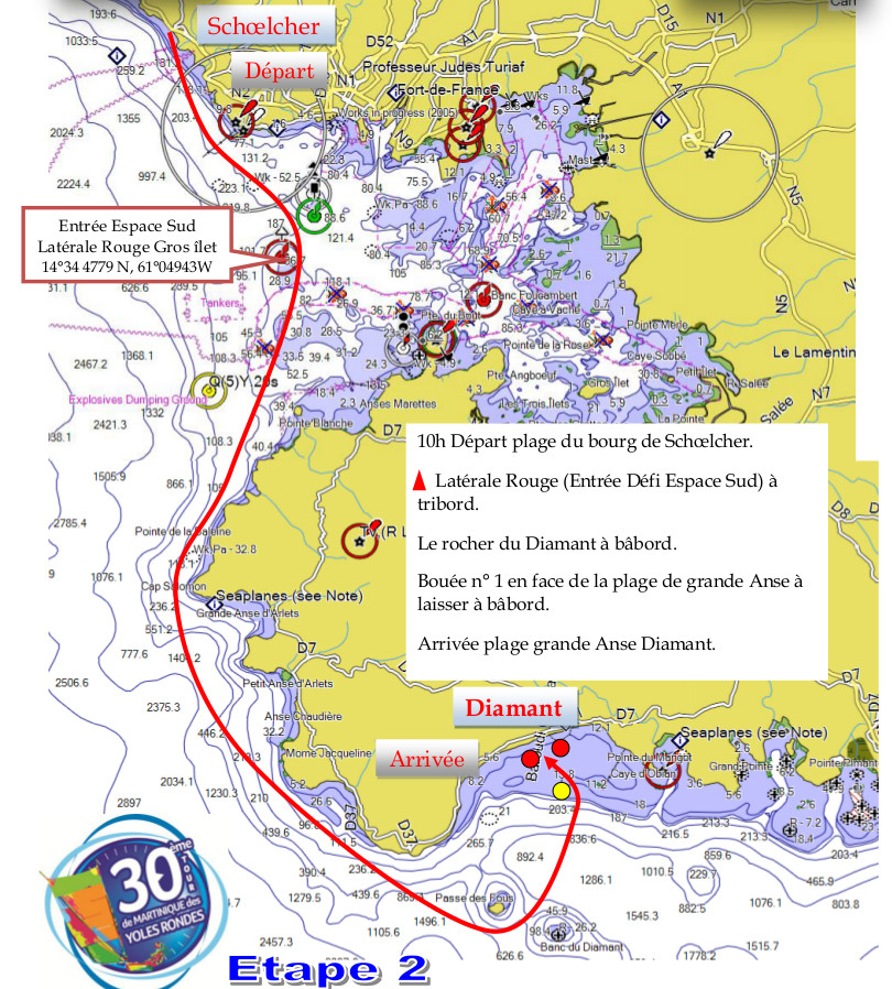 Mardi 29 juillet : Deuxième étape Schoelcher/Diamant (données et tracé sources FYRM)
