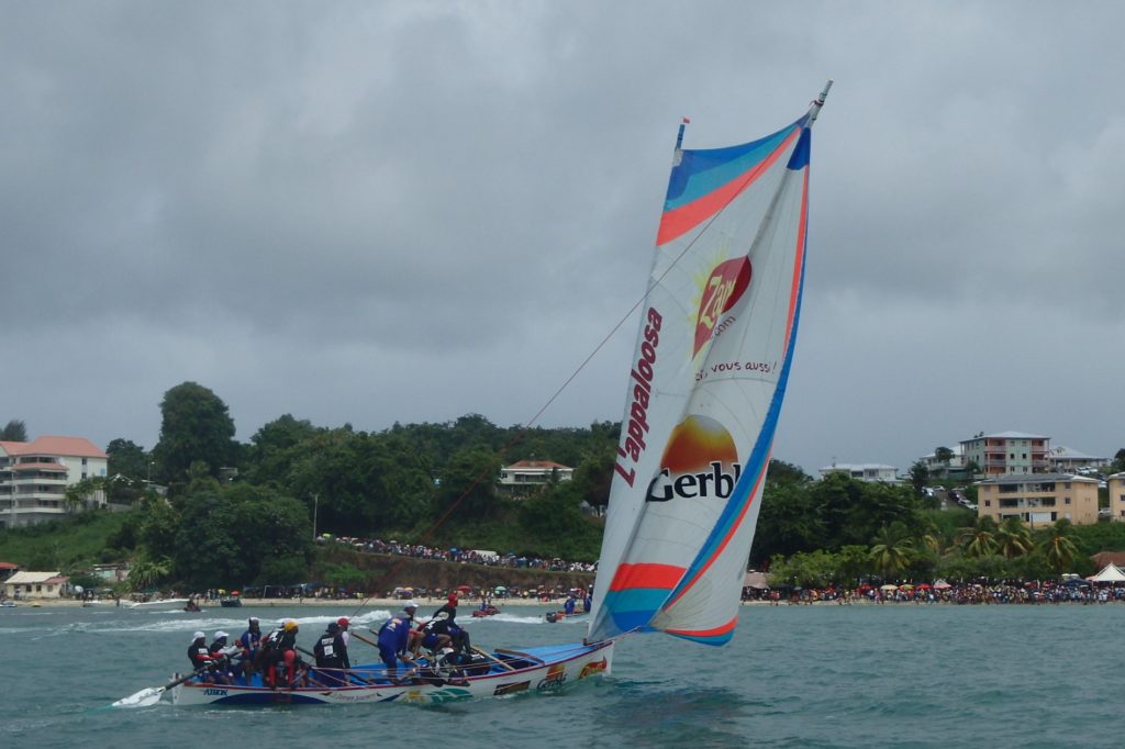 De la pluie, pas de vent, des voiles gigantesques de plus de 80m2, au moins pour les mapipi, un public enthousiaste au départ du Vauclin, et même déchainé sous la pluie à Trinité. Une yole qui prend les devants pratiquement dès le départ et qui lâche inexorablement ses poursuivants pour arriver avec une confortable avance sur son second GFA Caraïbes/Cottrell.