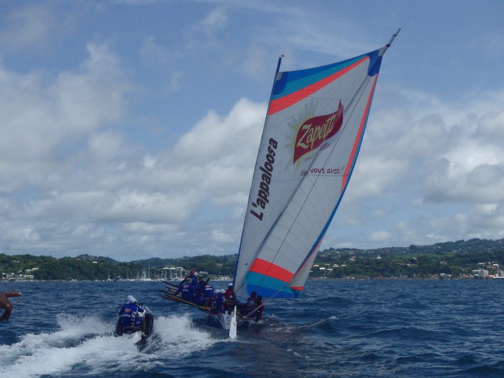 On l’attendait depuis le début du Tour. Le vainqueur du Tour des Yoles 2016, Zapetti/Appaloosa, a remporté l’étape qui arrivait à Trinité, comme l’an dernier. Sauf que, caprice du vent, sa large avance au passage de la Caravelle, qui aurait pu permettre à Loic Mas de prendre le maillot rouge ce soir, a fondu lorsque les yoles de derrière, où Ets Rosette/Orange a ramé, ont pu revenir et réduire leur écart.