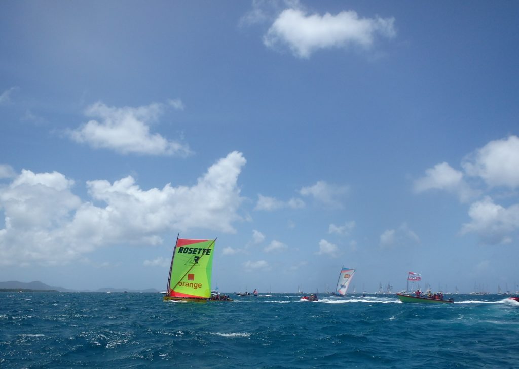 La passe de trois pour Ets Rosette Orange qui remporte la deuxième étape au Marin. Pourtant tout avait bien commencé pour Zapetti/Appaloosa qui passé le Rocher semblait avoir pris l’avantage d’autant que Brasserie Lorraine/SARA, leader depuis le départ touchait terre à La Dizac au Diamant pour mettre une plus petite voile (46m2). Mais lorsque le vent s’est levé la grande voile (60m2) de Zapetti/Appaloosa a été extrêmement difficile à porter et Laurent Mas qui tient la tête de pagaie puisque Loic son jumeau est blessé, a vu tour à tour Digicel/Petit Navire, CTDM/EDF et même Brasserie/Lorraine/SARA bord après bord le rattraper puis le dépasser.