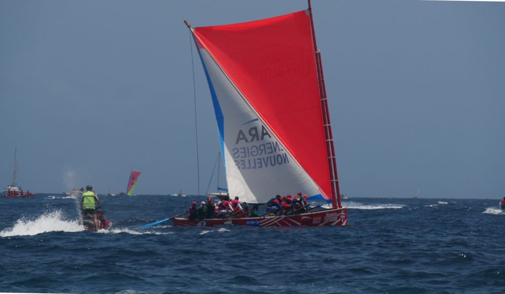 Dès le départ de Fort-de-France, Mutuelle Mare Gaillard va s’échapper vers le sud et les Trois Ilets grâce à une tenue de la yole qui lui permet de remonter au vent bien mieux que le reste de la flottille.