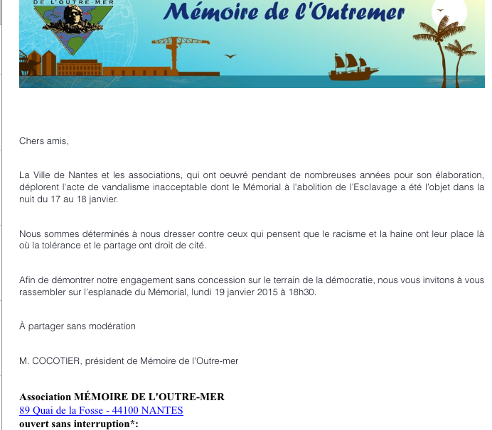 The right man in the right place bondamanjak 11 ans ago Dans la rubrique « Ça ne s’invente pas » il est étonnant de découvrir que le président de l’Association Mémoire de l’Outre-mer qui œuvre à Nantes s’appelle Monsieur…#Cocotier. Un homme qui doit être très près de ses racines.