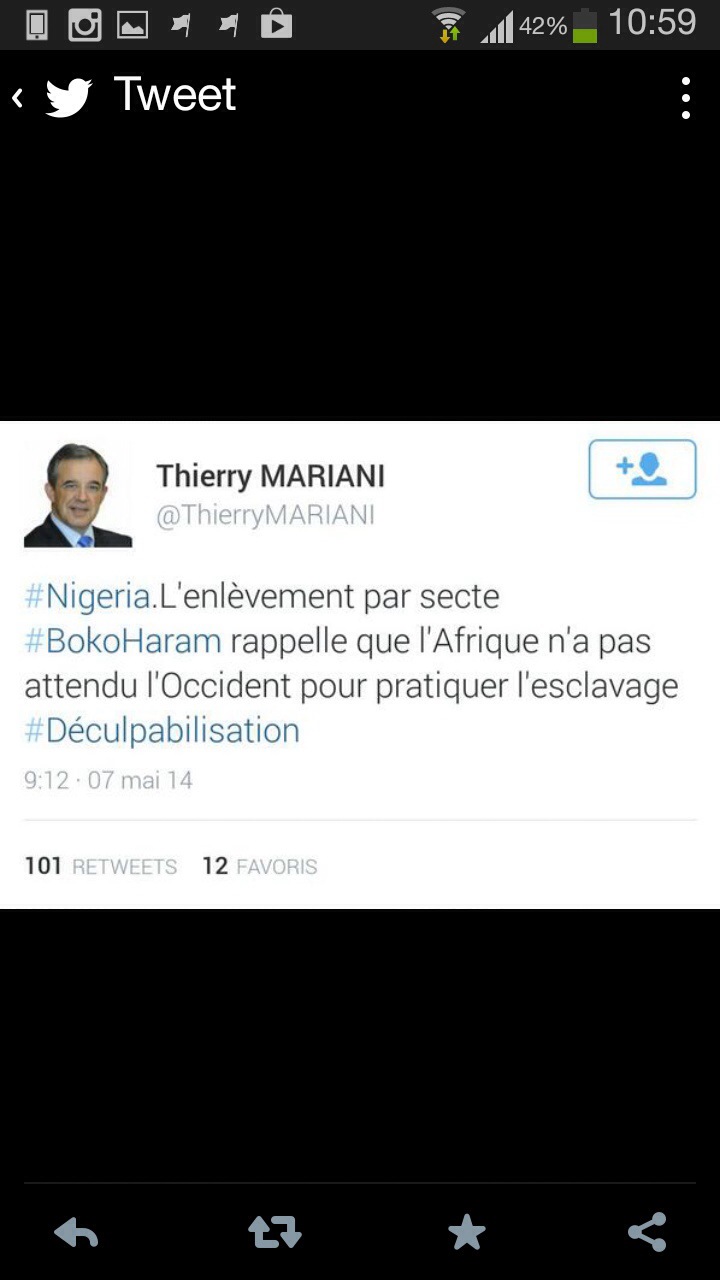 C’est le tweet du jour. Thierry #Mariani est con ? Non il est à l’#UMP.