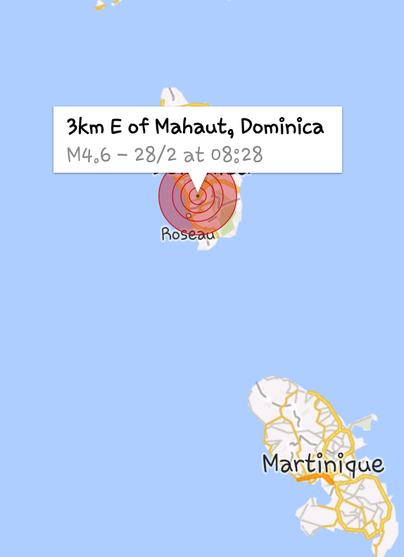 L’épicentre a été localisé à 21 km à l’est de #Dominique, à 136 km de profondeur (soit une distance hypocentrale d’environ 138 km). Ce séisme a pu générer, dans les zones concernées les plus proches, une intensité macrosismique de II−III (faiblement ressentie).