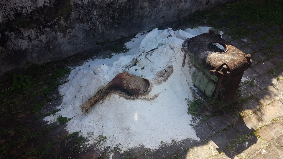 Voilà ce qu’on peut voir ce samedi 27 décembre 2014…dans les ruines du Théâtre du futur grand Saint-Pierre. C’est décidément bel et bien une ville d’arrêt d’histoire ! Le cadavre puant a été recouvert de chaux. Eh oui…c’est une belle intrigante attraction touristique au cœur d’une #Martinique qui avance.