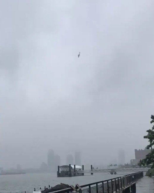La vidéo montre un hélicoptère qui vole d’une façon étrange avant de disparaitre dans les nuages en direction de Manhattan. Elle n’a pas encore été formellement validée pour les autorités.