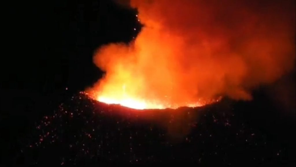 Eruption du 03 mai 2018 : Un #jongleur rend un hommage enflammé au #PitondelaFournaise à l’île de La Réunion.