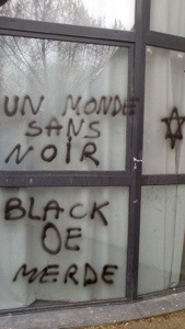 Ce lundi 6 janvier 2014, jour de la rentrée scolaire, à leur arrivée au collège, les élèves et professeurs ont pu découvrir un message raciste, « un monde sans #noir #black de merde », sur les vitres du collège Nelson #Mandela au Blanc-Mesnil en #France. Alors #Valls on dit quoi ?