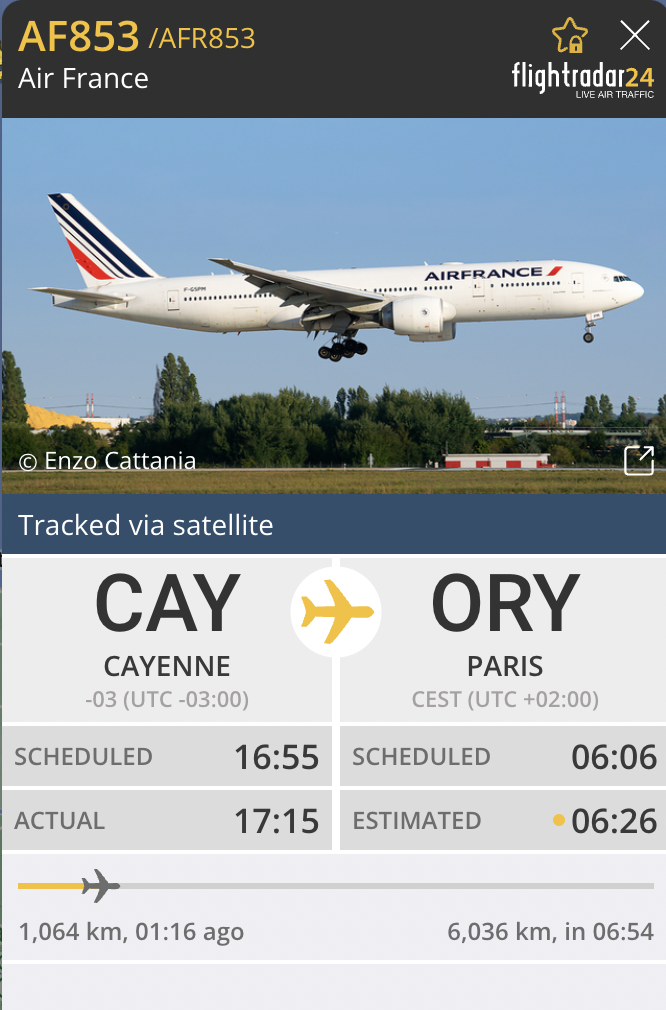 ✈️ Un avion de la compagnie Air France qui avait décollé de Cayenne en Guyane fait demi-tour pour une passagère malade en vol.