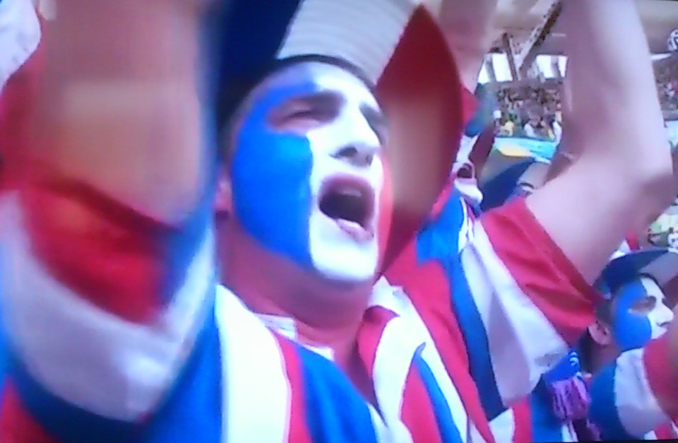 – Oh, on s’en sort ! Wé ! A ce moment-là, j’ai cru qu’on était foutu. La cheville du gars était complètement tordue. A angle droit. J’ai vu l’arbitre sortir le rouge. J’ai vu Matuidi, meilleur français de la première mi-temps, dehors. A 10 contre ces 11 types déchainés ? Ces morts-la-faim ? On était foutu j’te dis.