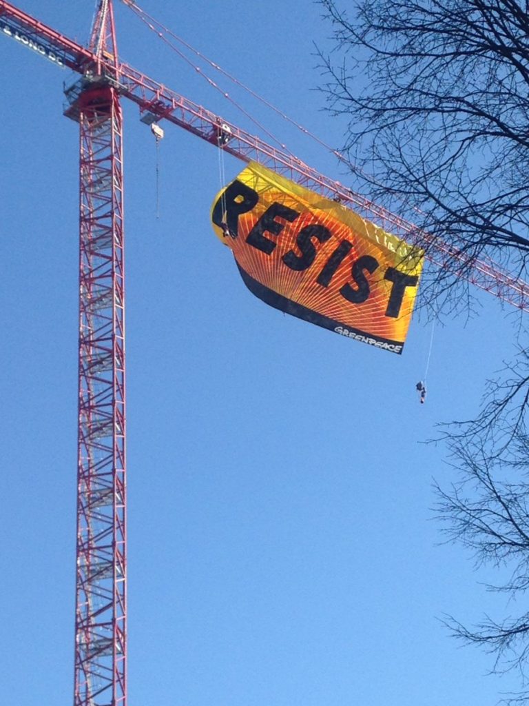 Vidéo live : des manifestants sur une grue devant la Maison Blanche bondamanjak 9 ans ago Greenpeace a fait fort ce matin : une immense banderole déroulée sur une grue et visible depuis la Maison Blanche. « RESIST »…