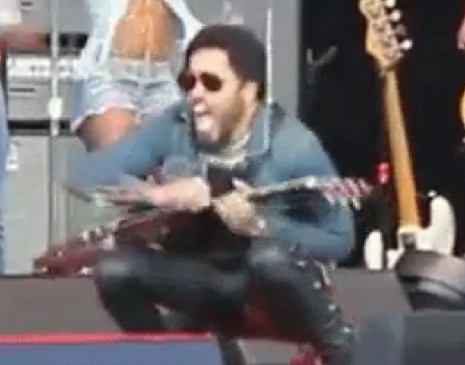 Le chanteur Lenny #Kravitz n’avait pas un pantalon qui a des couilles. Une malencontreuse économie de 450 000 € et…en plein live son vit se montre ad en vie ad vitam aeternam. Lorsqu’on aime les nems..vu ce pâté impérial …ça laisse bouche bée.