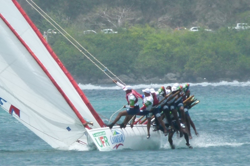 Félix Mérine sur UFR/ Chanflor sent désormais le souffle d’Athon Mas sur Dr Roots/Zapetti. Neuf points séparent les deux yoles depuis la victoire, dimanche dernier à Sainte Anne, de la yole du François.