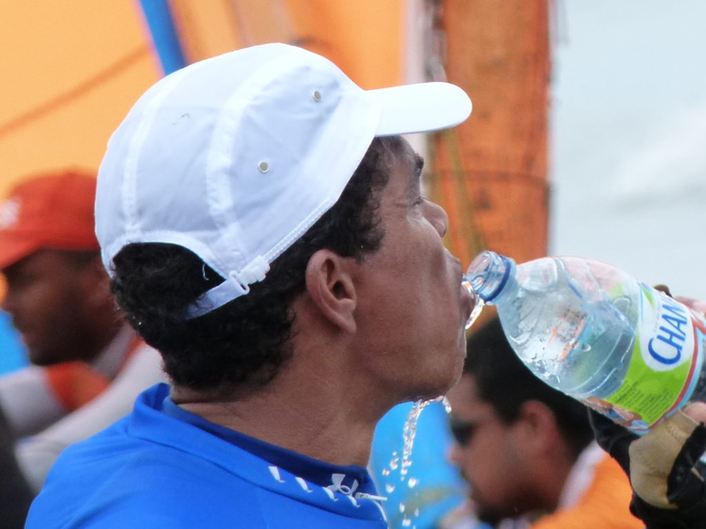 Ce matin au #Vauclin, Martinique – Dans la première régate, à deux voiles, un kalmisiré trompeur, un gros grain sous un énorme amas nuageux qui amène une bascule du vent…. et la moitié de la flottille a coulé après même pas vingt minutes après le départ laissant UFR/Chanflor et Brasserie Lorraine/Isuzu comme seul mapipi en course. A ce moment là, Dr Roots/Zapetti et Rosette/Orange, qui avaient choisi un bord nord, menaient.