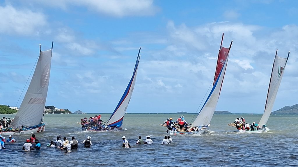 Pour cette 5ème journée du Championnat de Martinique des yoles rondes, initialement prévue au Vauclin et déplacée au Robert pour raisons sanitaires (une casse au niveau de l’assainissement), le public a encore répondu, nombreux et bouillant sur tout le front de mer de la commune et à tous les points de vue qui permettaient de suivre le déroulement des régates.