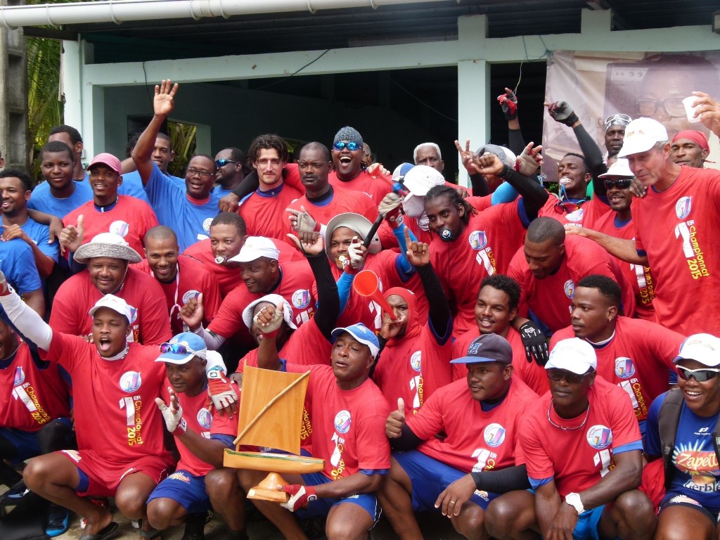 Ce 14 juillet à Trinité, la dernière course du Championnat 2015 a consacré la jeunesse du pays. Loïc Mas (bientôt 25 ans) n’a laissé aucun espoir à ses poursuivants. Pourtant, la première régate a été difficile, car sur-toilée sa yole avait du mal à porter sa voile. L’équipage a serré les dents et a réussi à finir 6ème tandis que UFR/Chanflor, deuxième au général, remportait la course devant Cottrell/GFA, Rosette/Orange, Brasserie Lorraine et Fiser.